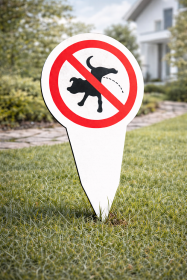 Urinierende Hunde können Rasenflächen, Beete und Grünanlagen dauerhaft schädigen. Das Hundesteckschild „Hund pinkeln verboten“ macht diesen Hinweis eindeutig sichtbar und unterstützt eine klare, sachliche Kommunikation ohne Worte.