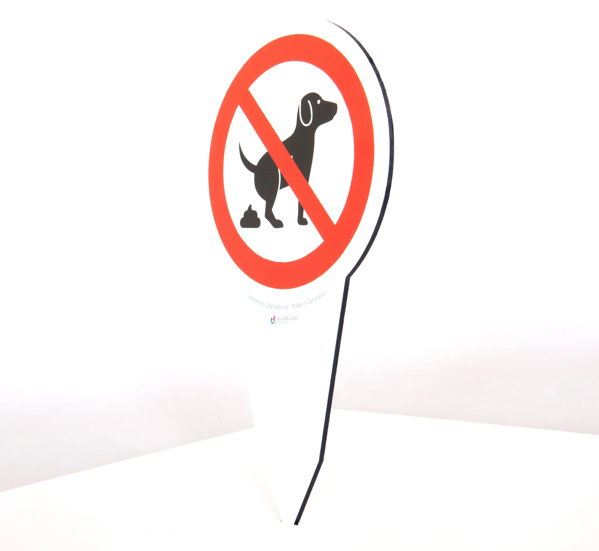 Das verständliche Verbotssymbol mit Hundepiktogramm wird sofort erkannt. Die neutrale Gestaltung wirkt bestimmt, ohne aggressiv zu erscheinen, und eignet sich damit besonders für private Grundstücke sowie Miet- und Wohnanlagen.